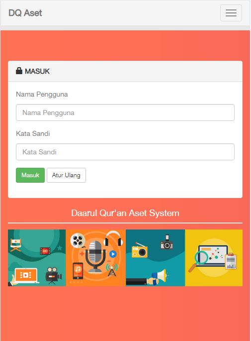 Halaman utama, adalah halaman informasi yang menyajikan total nilai aset per kategori, misal kategor...